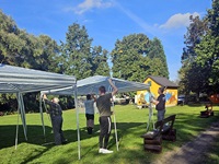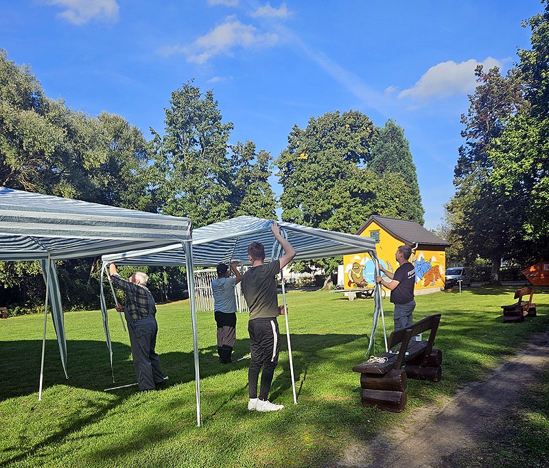 Da wären auch Maik und Verena Franke, die seit Jahren nicht nur am Bräter und im Verkauf mithelfen, sondern auch immer das bunte, viel gelobte Bühnenprogramm organisieren und selbst auftreten. Zudem ist Maik der Zeltbeauftragte des Festes. Er sorgt mit einem Team von Freiwilligen Jahr um Jahr dafür, das Fest-, Wein- und Pufferzelt an der richtigen Stelle stehen und auch wieder zurück an ihren Platz kommen.